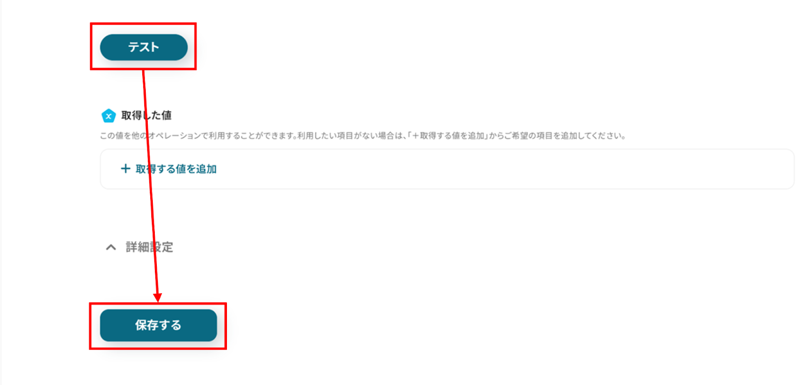 入力が終わったら「テスト」をクリックし、エラーが発生しなければ「保存する」をクリックします。