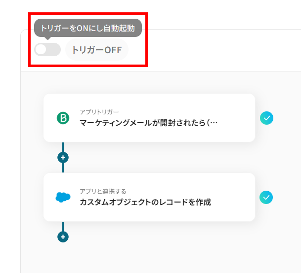 Brevoを活用したマーケティング施策と、Salesforceでの顧客管理を別々に行い、情報連携に手間を感じていませんか。手作業でのデータ入力は時間がかかるだけでなく、入力ミスや対応漏れのリスクも伴います。このワークフローは、Brevoで特定のマーケティングメールが開封されたことを検知し、Salesforceへ自動でレコードを作成するものです。BrevoとSalesforceの連携を自動化し、スムーズな情報共有と迅速な営業アプローチを実現します。