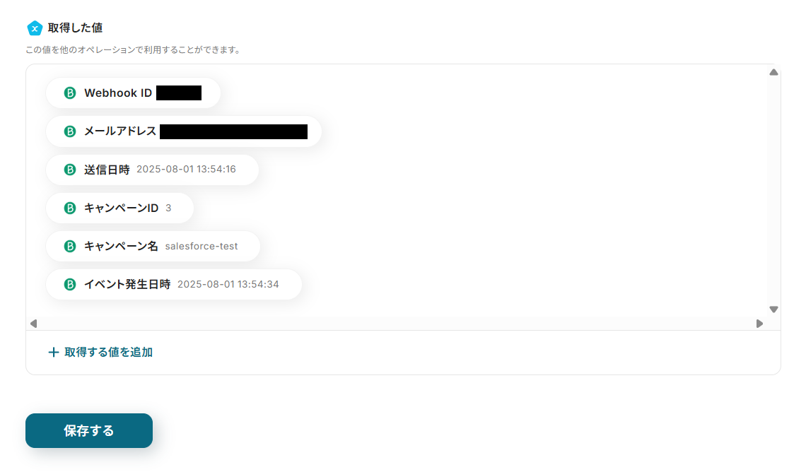 これにより、Brevoから取得した値をSalesforceへ動的に反映できます。