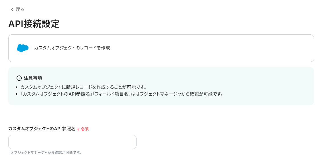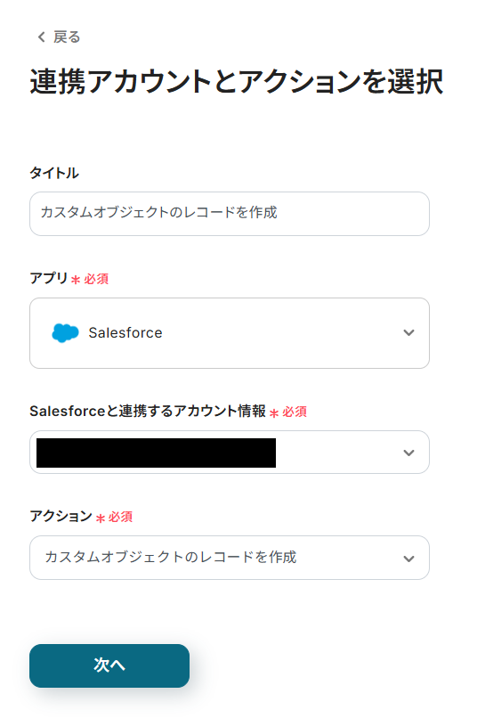 次に、Salesforceに登録するレコード情報を設定してください。