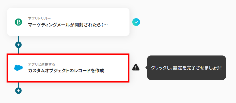 特定のキャンペーンメールや、特定の製品に関するメールが開封された場合のみ、Salesforceにレコードを作成することもできます。