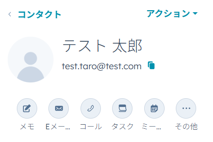 実際にHubSpotにログインしてみて、コンタクトが新たに作成されているか確認してみましょう。メールアドレスなどがしっかり反映された状態で、コンタクトが作成されていますね。