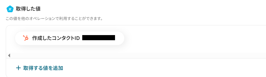 必要な設定が終わったら「テスト」ボタンを押してみましょう。取得した値に、HubSpot側で作成されたコンタクトIDが表示されていれば成功です!
