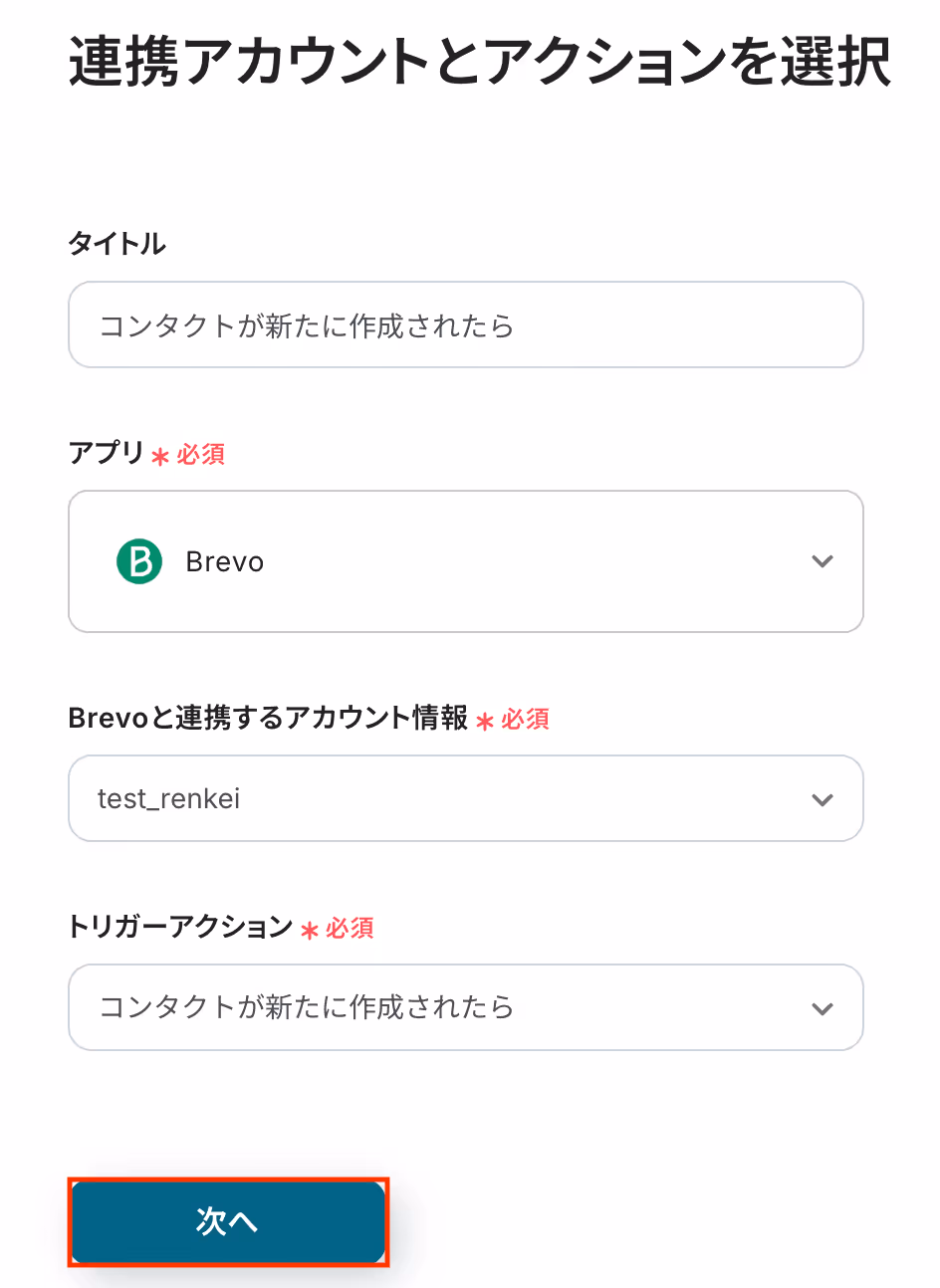 Brevoと連携するアカウント情報に問題がなければ、「次へ」をクリックします。