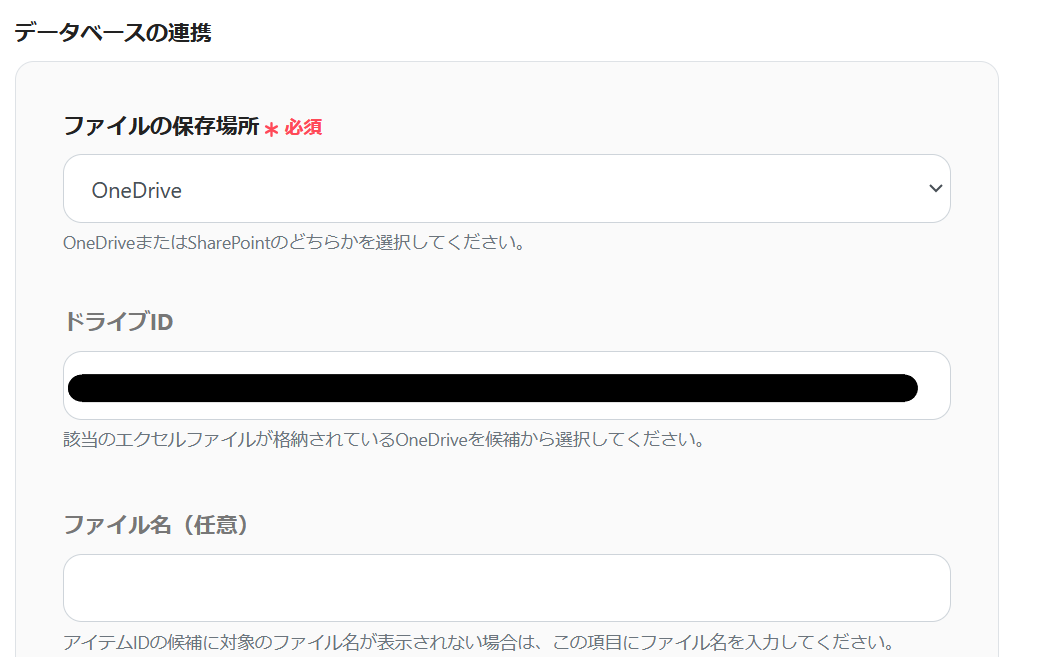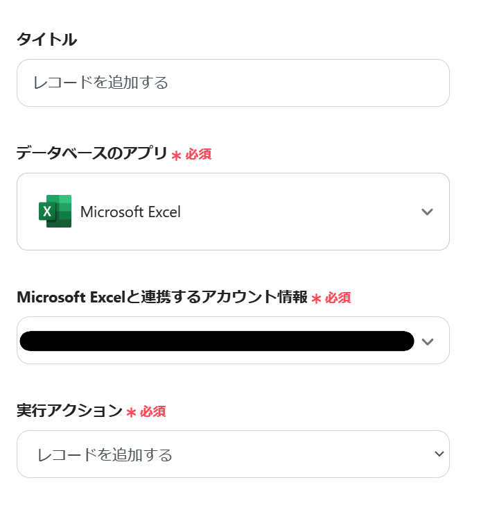 2.Microsoft Excelと連携するアカウント情報を入力します。