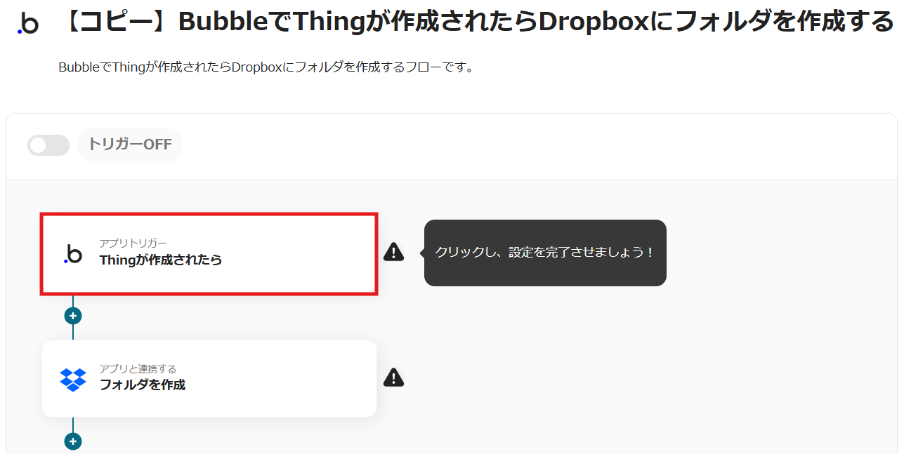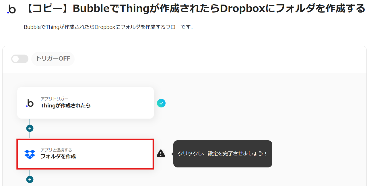 これから、プログラミング不要でアプリ連携が可能なYoomで、「BubbleでThingが作成されたらDropboxにフォルダを作成する」というフローボットの作成方法を紹介します。
