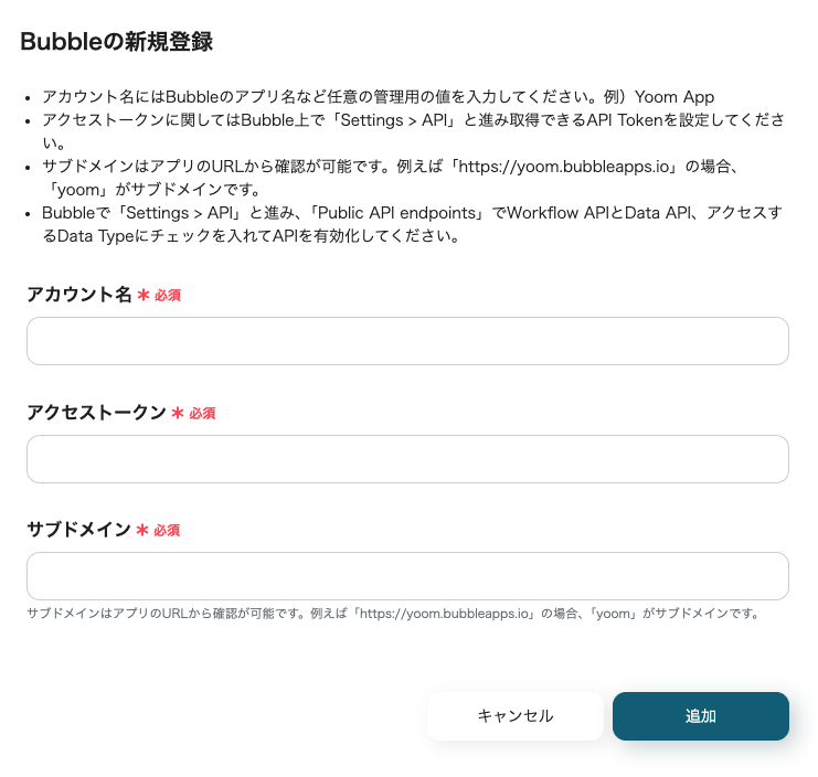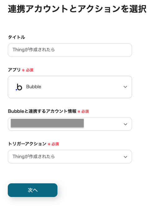 続いて「Bubbleと連携するアカウント情報」を確認してください。