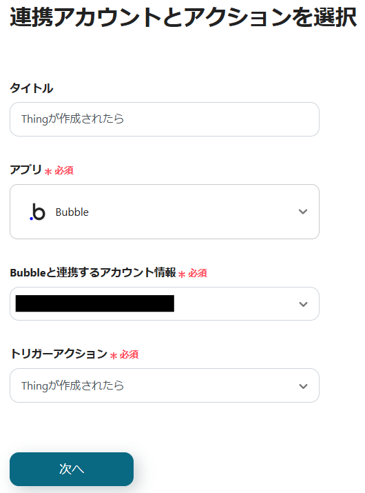 3.Bubbleと連携するアカウントを確認し、「次へ」をクリックします。