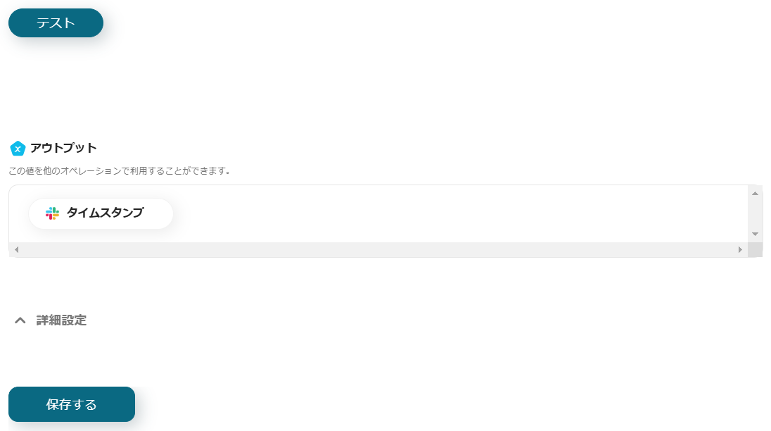 アウトプットにHubSpotへ登録したい項目を追加して保存します。
