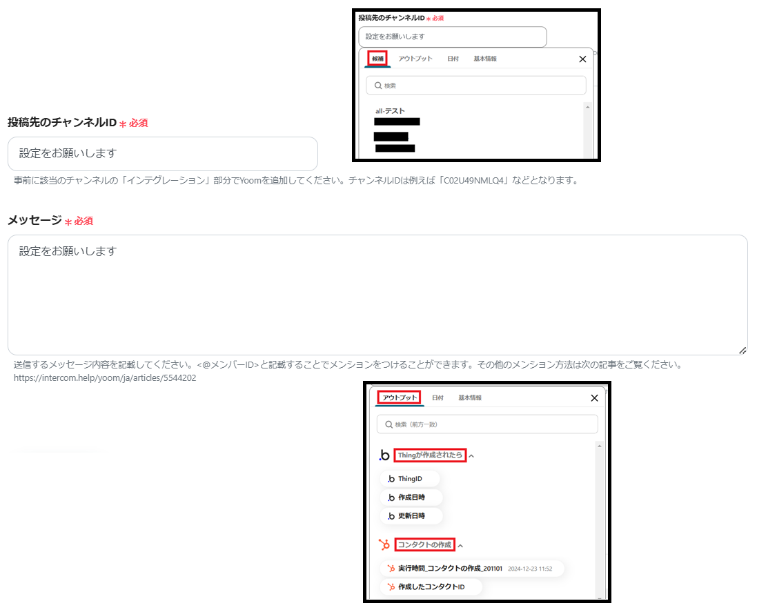 ※投稿先のチャンネルIDは枠をクリックして表示される「候補」から選択できます。