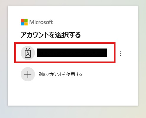 Microsoft 365のログイン画面に移動したら、連携したいアカウントを選択します。