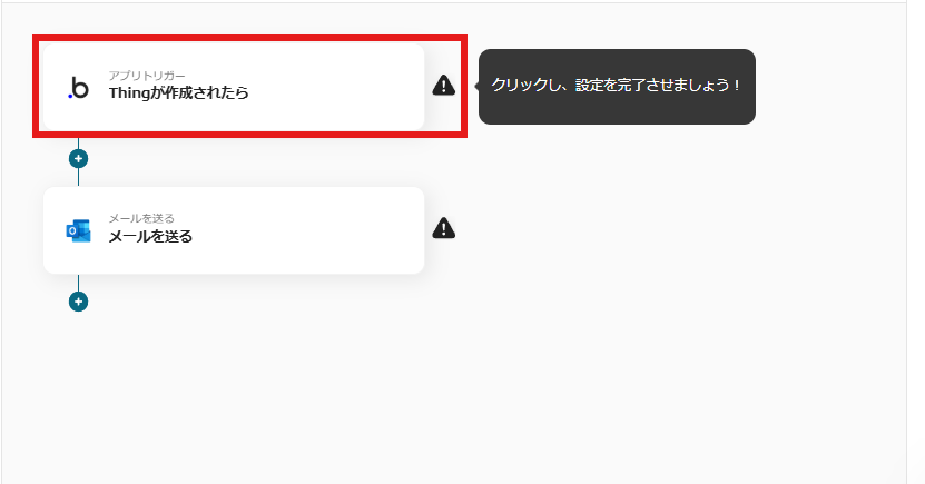 いよいよYoomのフローボットの操作に移ります。赤枠内の「Thingが作成されたら」をクリックしましょう。