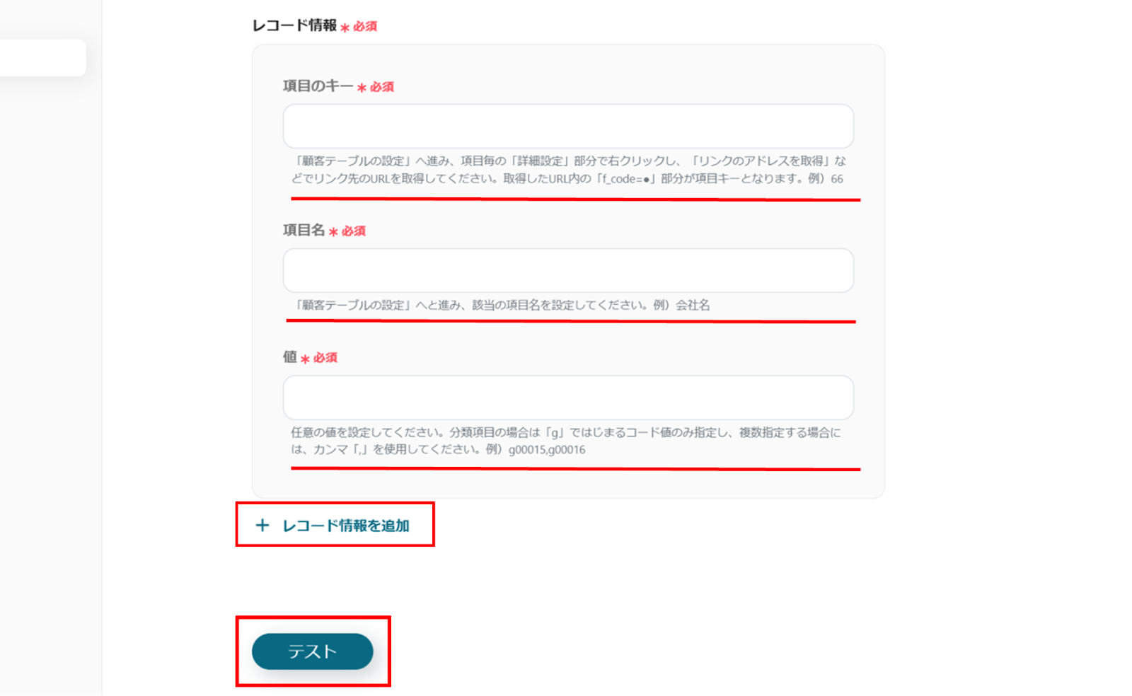 「+レコード情報を追加」をクリックすることで、レコード情報を追加することができます。