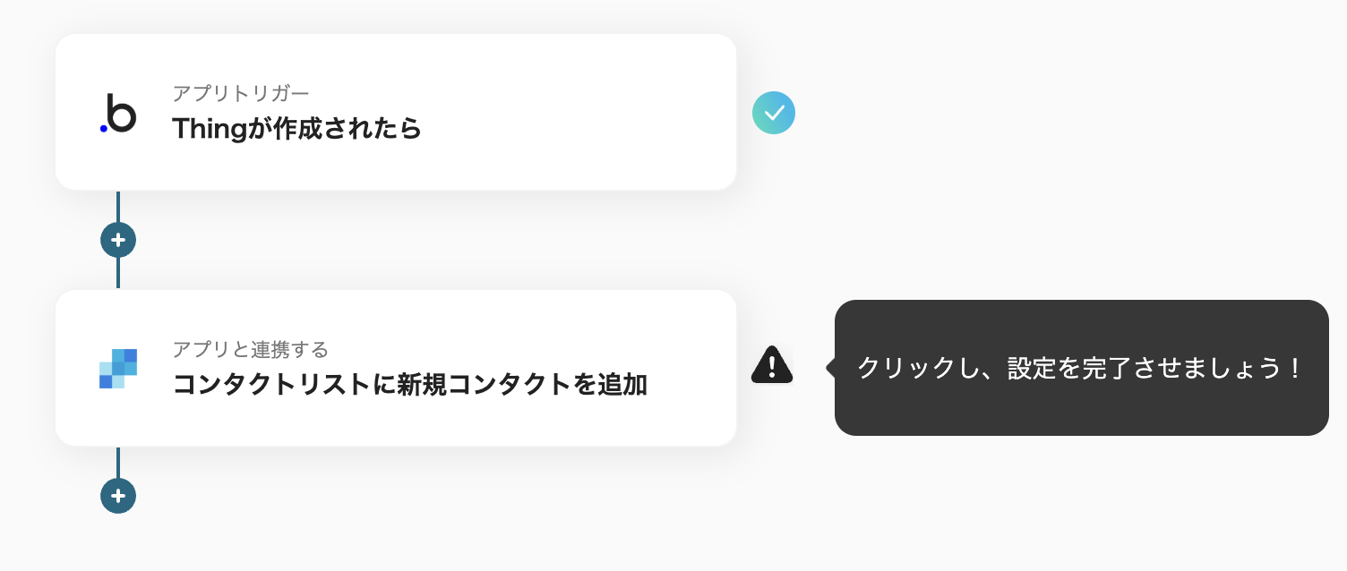 (1)最後に、2つ目のアクション「コンタクトリストに新規コンタクトを追加」をクリックしましょう。