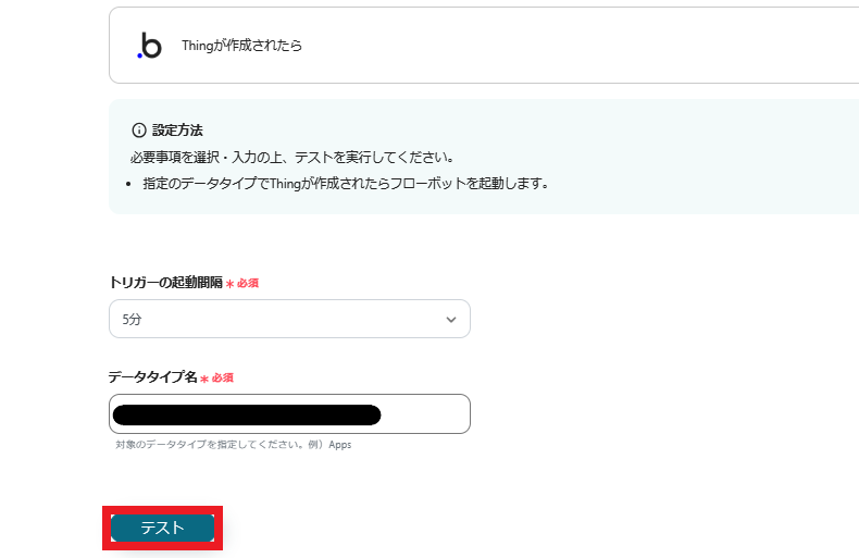 3.トリガーの起動間隔とデータタイプ名の設定を行ってください。