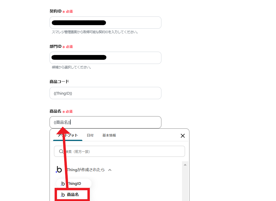 部門IDは候補から選択してください。