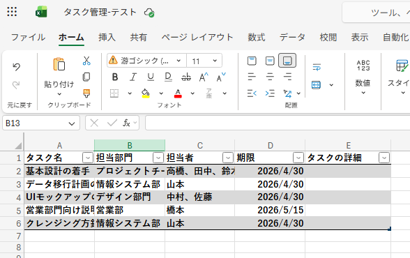 Excelを見ると、タスク情報が追加されていることが確認できます。