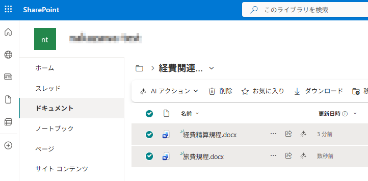作成手順 SharePointに社内規程が記載されたファイルを保存します。