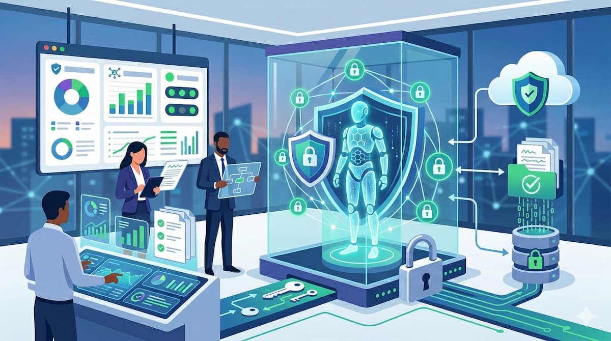 機密性の高い社内データを利用するシステムを独自に構築して運用する上で、情報漏洩や不正アクセスの防止は企業にとって不可欠な要素です。ここでは、エンタープライズ規模の環境において、安全にAIアシスタントを活用するためのセキュリティ保護とガバナンスの管理体制について詳しく解説します。