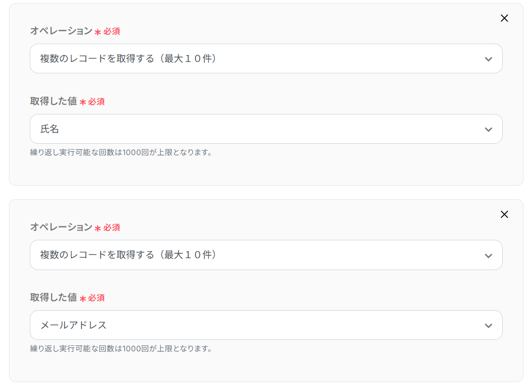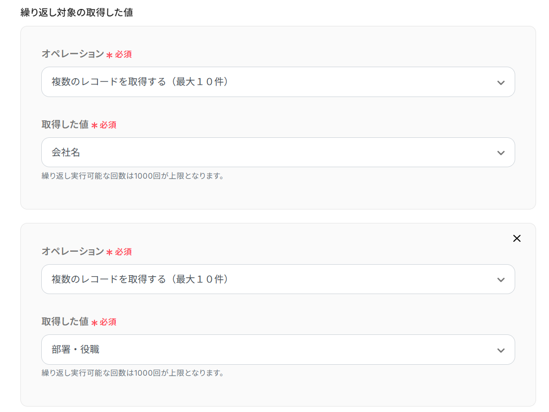 ※「同じ処理を繰り返す」オペレーション間の操作は、チームプラン・サクセスプランでのみご利用いただける機能です。