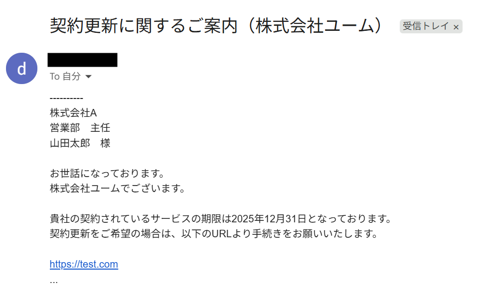 今回はテストなので1件ですが、実際は取得したレコード分のメールが送信されます。