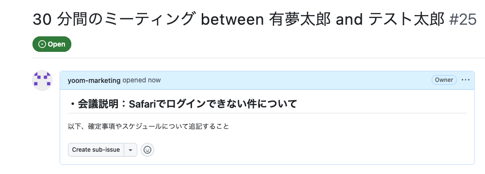 実際にCal.comで予定を作成し、GitHubにIssueが自動で作成されるかを確認してみましょう。