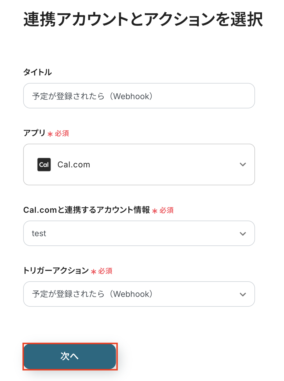 Cal.comと連携するアカウント情報に問題がなければ、「次へ」をクリックします。