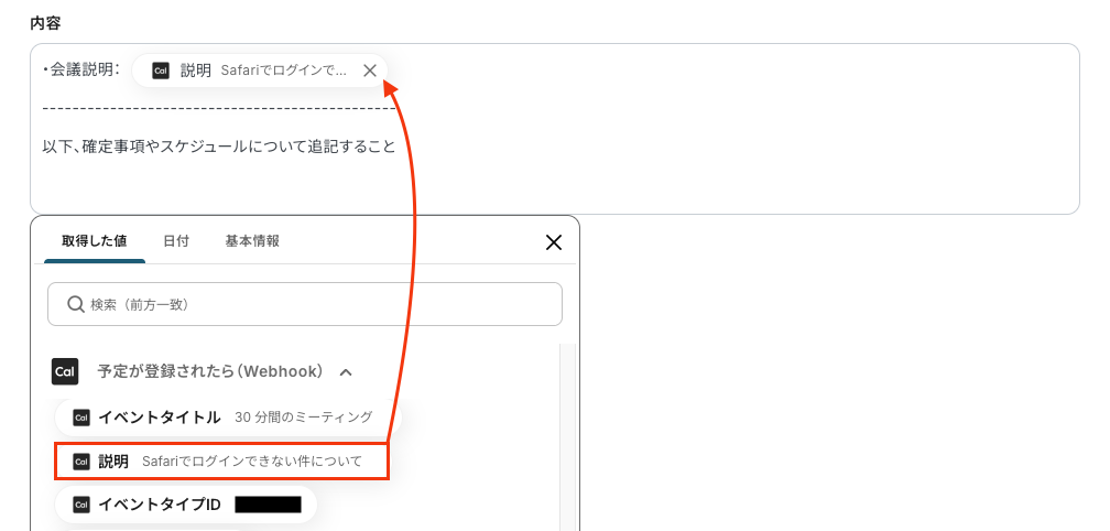 さらに、Cal.comから取得したアウトプットを活用することで、フローボット実行のたびに最新の情報を反映させることが可能です。