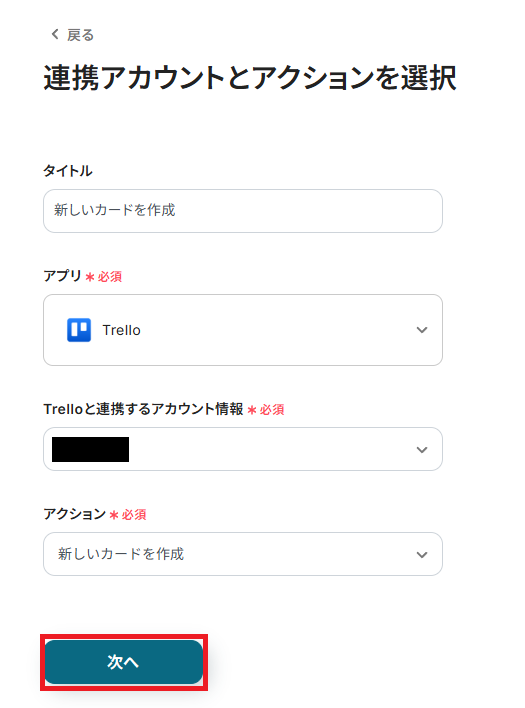 ステップ4:Trelloのアクション設定