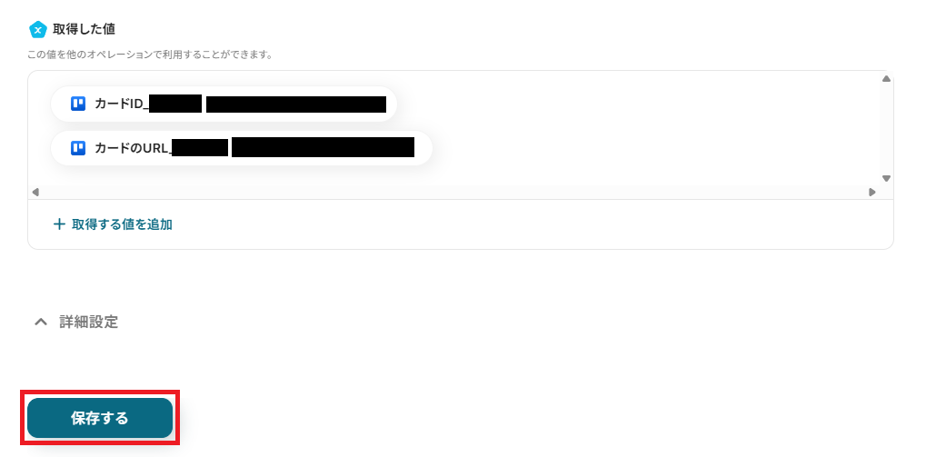 なお、この取得した値をこの後のTrelloの設定で活用することで、カードに自動追加可能です。