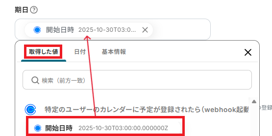 「期日」も、取得した値から設定可能です。