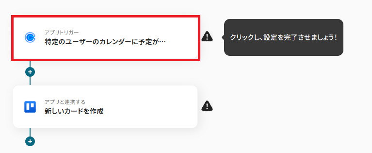 まず、「特定のユーザーのカレンダーに予定が登録されたら(webhook起動)」をクリックしてください。