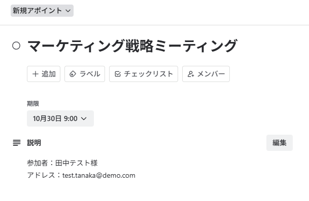 この自動化により、アポイント後のタスク作成を手動で行う手間がなくなり、対応漏れや転記ミスを防ぐことができます。