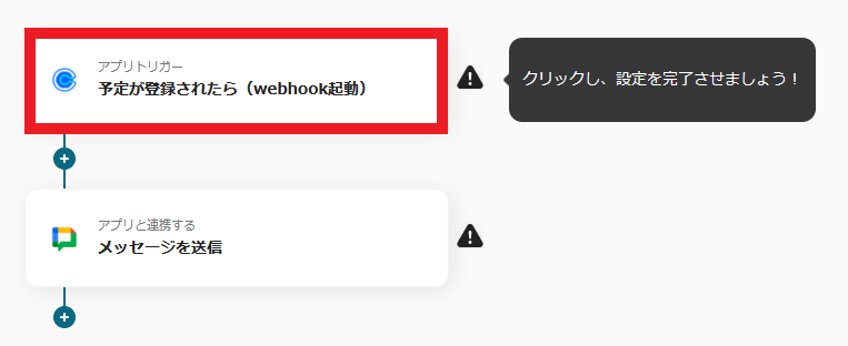 1.まず、一番上の「予定が登録されたら(webhook起動)」をクリックします。