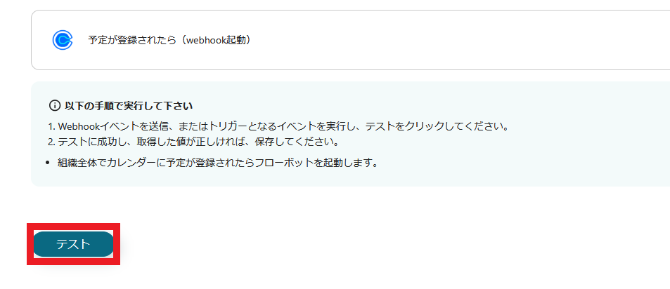 トリガーは「予定が登録されたら(webhook起動)」を選択します。