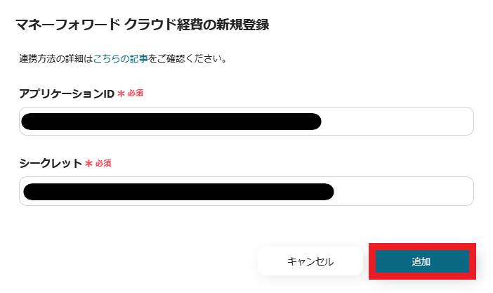 アプリケーションIDとシークレットを入力してください。