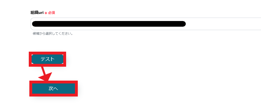 組織uriは、入力欄をクリックすると候補が表示されるので、その中から選択してください。