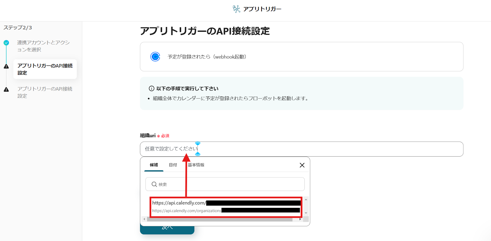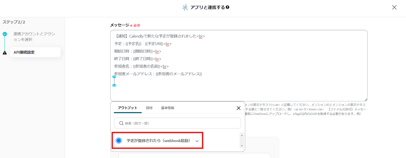 ・Calendlyを起動しリアルタイムで情報を取得する設定