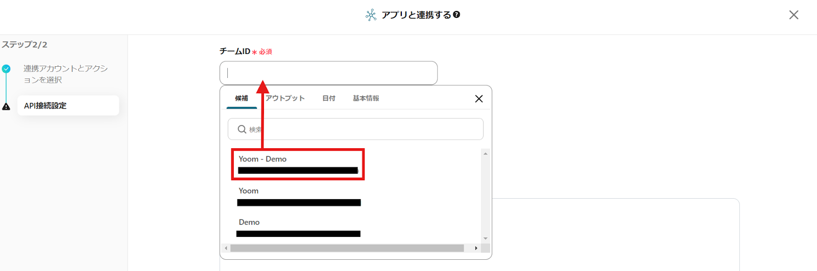 API接続設定画面に移行します。組織を選択してください。
