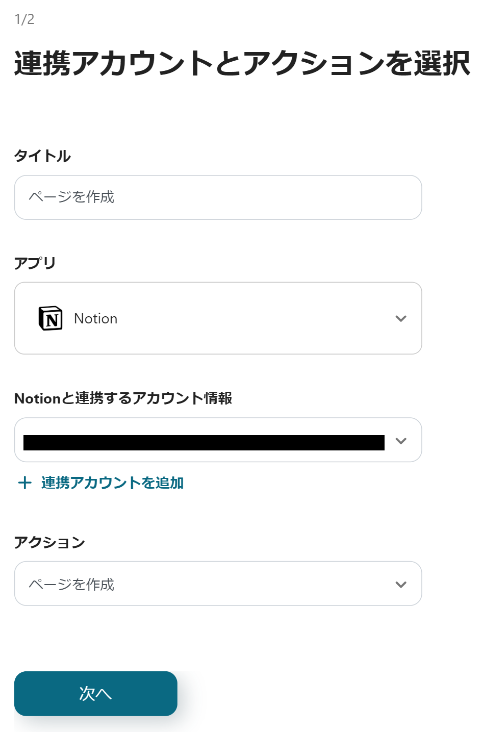 続いてNotionの設定を行うので、「ページを作成」をクリックしましょう。