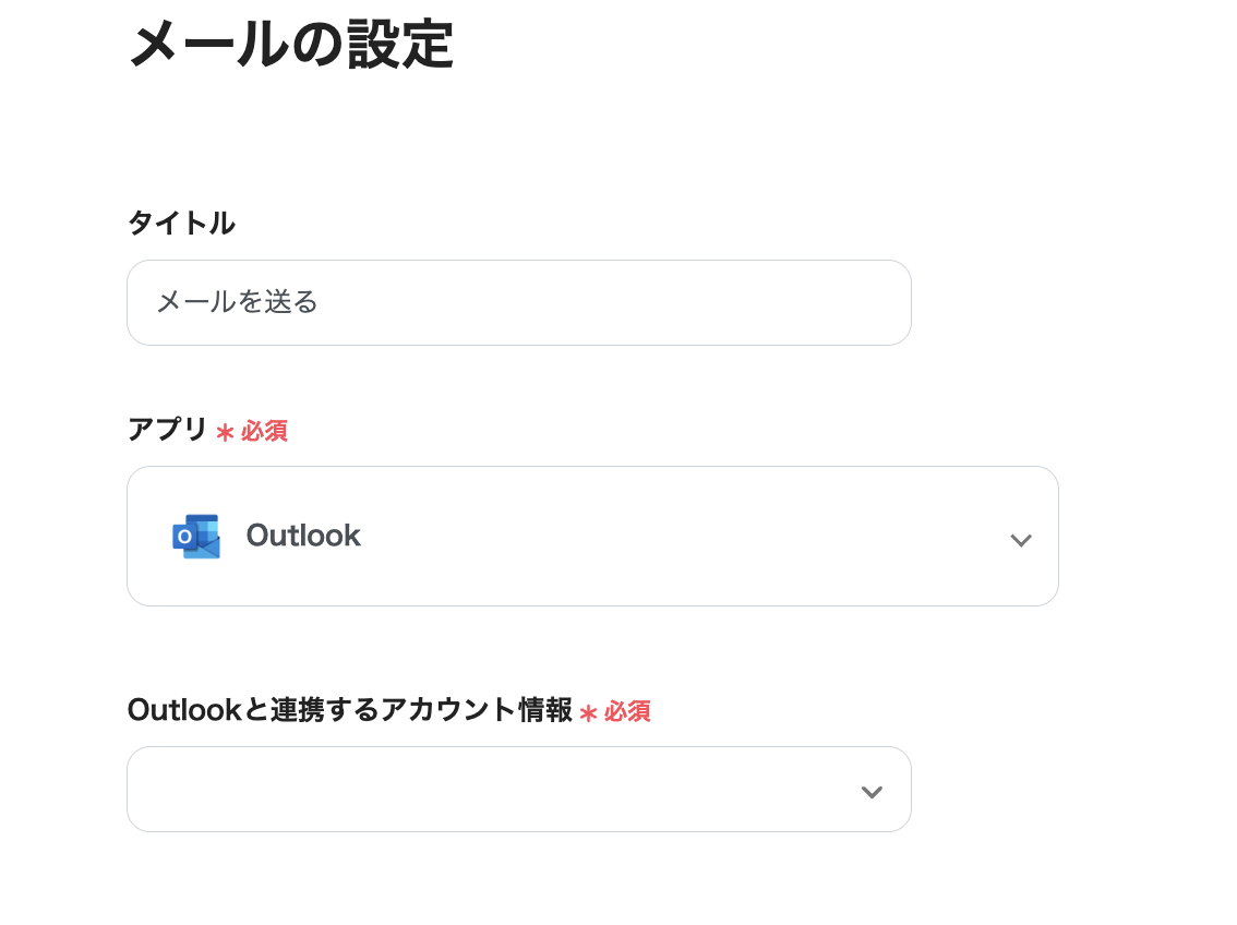 ・アプリ:Outlookを選択します