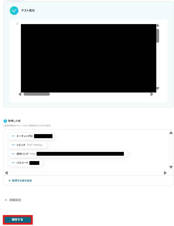 つまり、Calendlyの予定名の中にTESTというワードが含まれている場合のみZoomミーティングを作成するということになります。