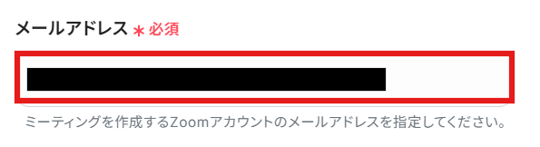 ミーティングを作成するZoomアカウントのメールアドレスを指定しましょう。