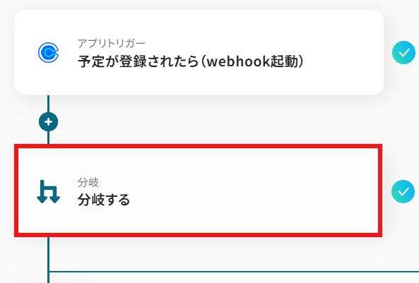 特定の条件の場合のみフローを進行させるよう分岐の設定を進めていきましょう。