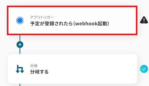 以下の画面で、「予定が登録されたら(webhook起動)」をクリックします。