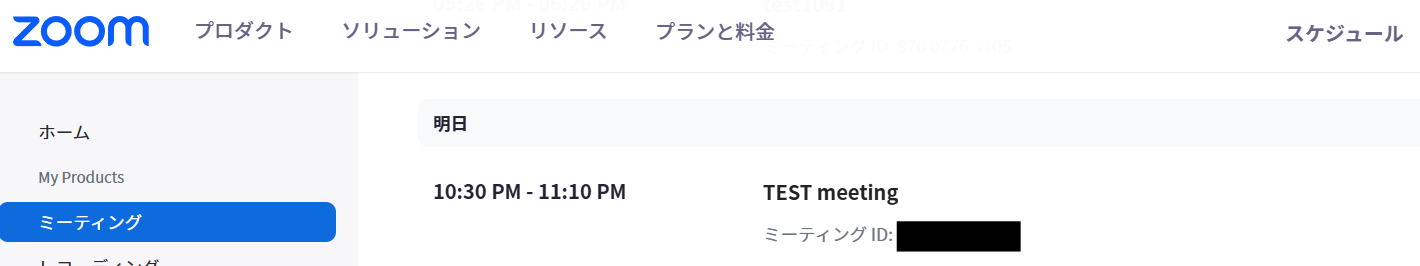 テストが成功すると、Zoomで新しくミーティングが作成されていますので確認してみてください。