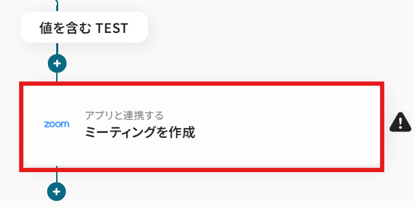 次に、先ほどの分岐で設定した条件に当てはまった場合に、Zoomでミーティングを作成するアクションの設定を進めていきましょう。