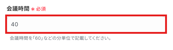 ・会議時間:指定の時間を入力します。1時間であれば60と入力してください。