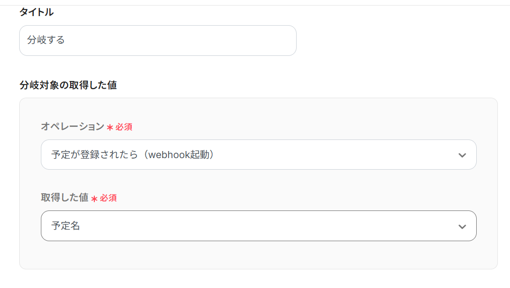 取得した値の欄には分岐条件の対象にしたいものを選びましょう。
