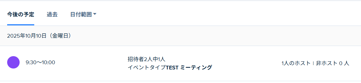 この後、連携テストをおこないますので、Calendlyでテスト用の予定を登録しておきましょう。